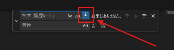 検索ボックスの右端にある .* のマーク(正規表現を使用)をクリックして、オン(ハイライトされた状態)にします。