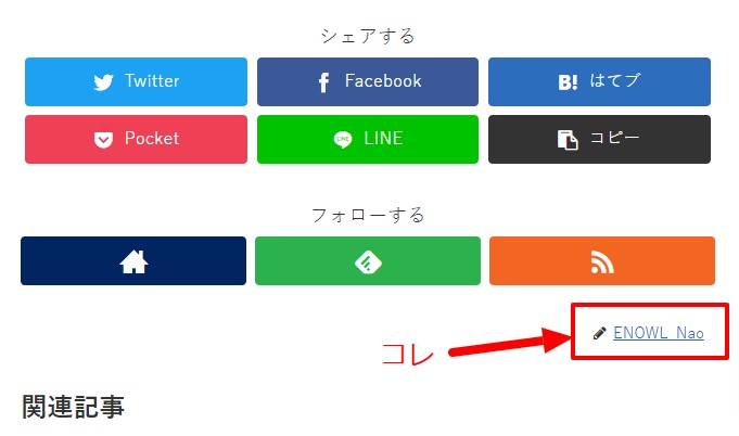Cocoonの初期設定では、記事下にユーザー名が表示されています。