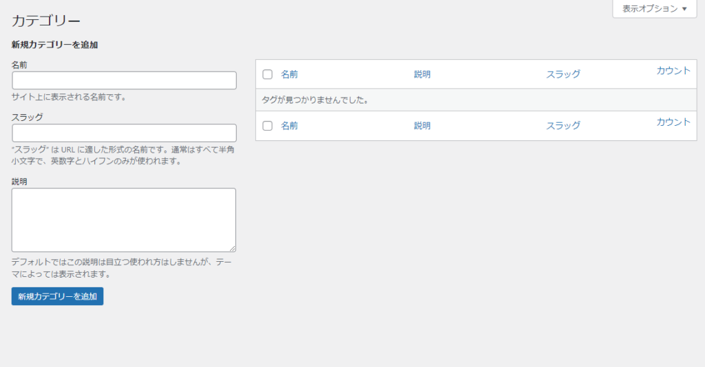 下の画像のようにタームは登録されていない状態になります。