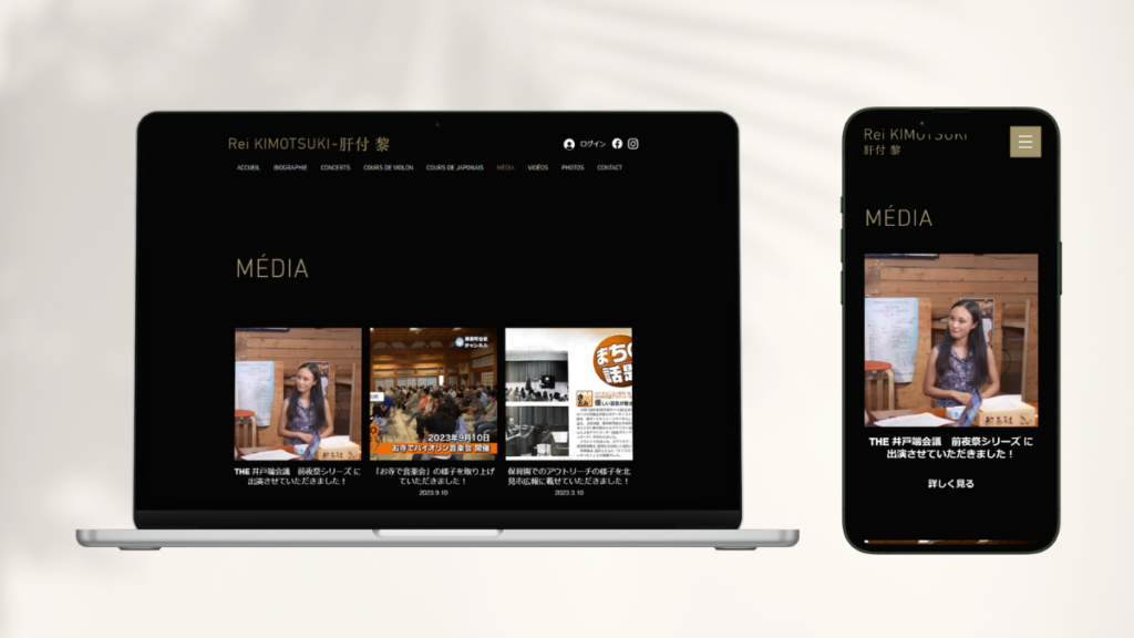 ヴァイオリニストとして活躍されている肝付様のホームページ改修を担当させていただきました。スマホ対応や見やすさの改善、ヘッダーやメニューの調整などを行い、肝付様の活動や実績を魅力的に伝えるサイトに仕上げました。